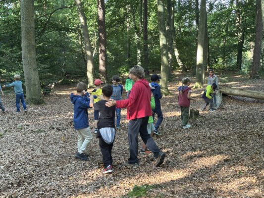 waren plötzlich Vogeleltern. Zunächst mussten wir uns einen Ruf ausdenken, damit wir uns wiederfinden konnten. Das wurde danach getestet: Ein Kind hatte verbundene Augen, dass andere Kind hat den „blinden“ Vogel mit dem verabredeten Vogelgesang gerufen. Manch