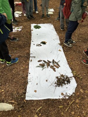 Am Mittwoch haben wir die Bäume im Wald erkundet und viel über Nadel- und Laubbäume kennen gelernt: Welche Früchte und Blätter