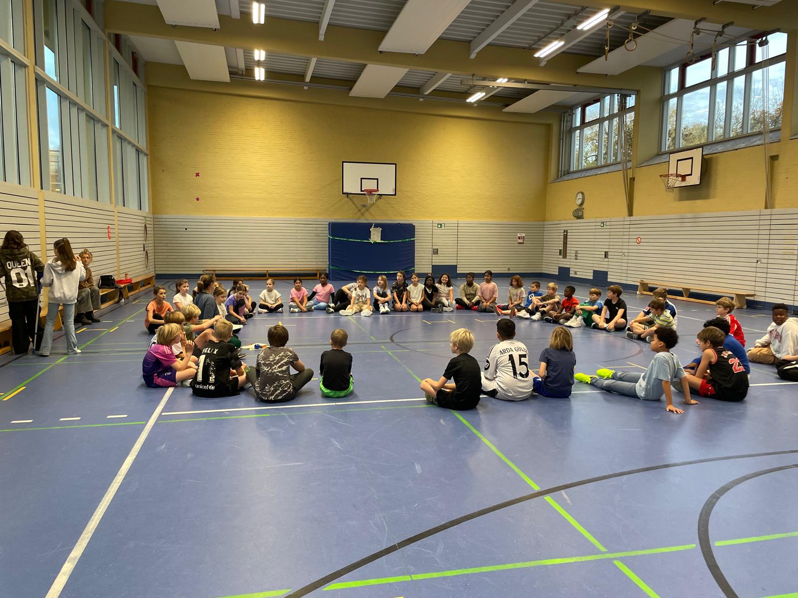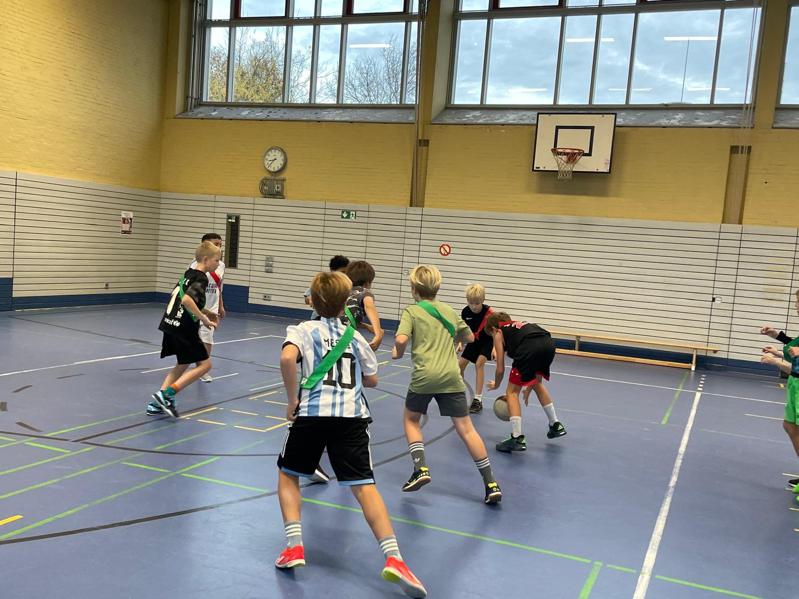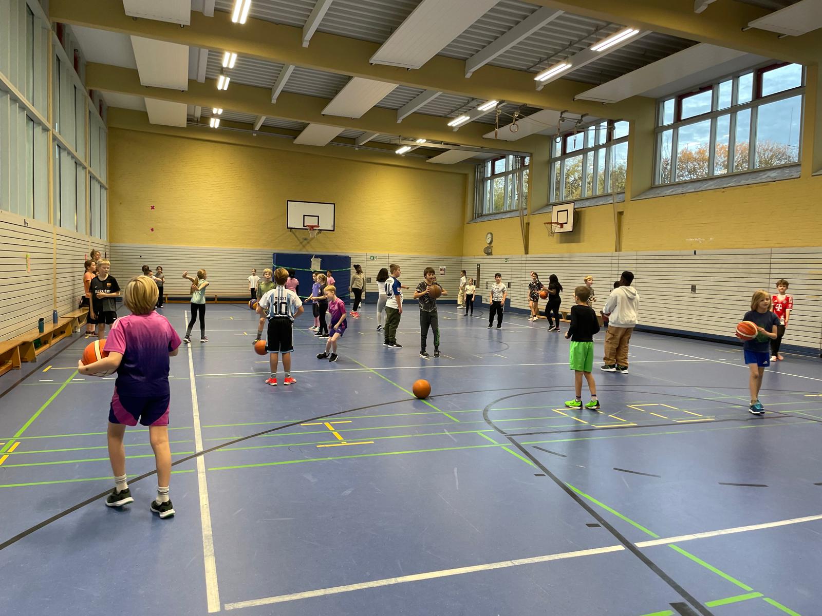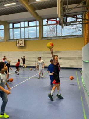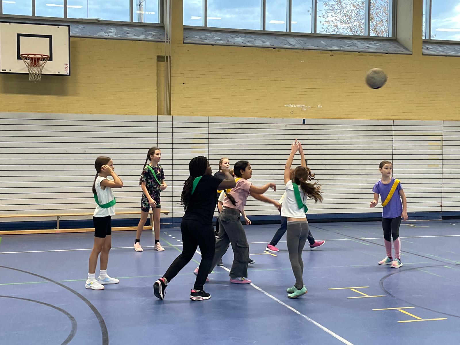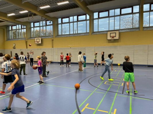 Im Zuge der Basketballwoche an der Schela kamen alle 4. Klassen im November zum Turnier in der Turnhalle zusammen. Jede Klasse stellte ein Mädchenteam, ein Jungenteam und eine gemischte Mannschaft und los ging es- 6 gegen 6 bei 5 minütigen Spielzeit. Es wurde gepasst, geworfen und angefeuert. Die Klasse, die gerade nicht spielte, stellte das Schiedsgericht. Alle 3 Klassen gewannen einzelne Spiele und das Miteinander funktionierte gut, auch wenn wegen der Anfeuerungsrufe nicht jeder Schiedsrichterpfiff gehört wurde. Die meisten Entscheidungen klärten die Teams schon untereinander, bevor das Schirikind anzeigen konnte. Das Fairplay stand im Vordergrund und alle 3 Klassen haben tolle Spiele gezeigt. Dies war das erste, aber bestimmt nicht da letzte Basketballturnier an der Schela.